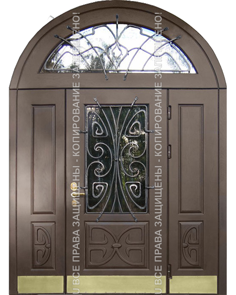 Железная арочная дверь МДФ с ковкой/стеклом 3143